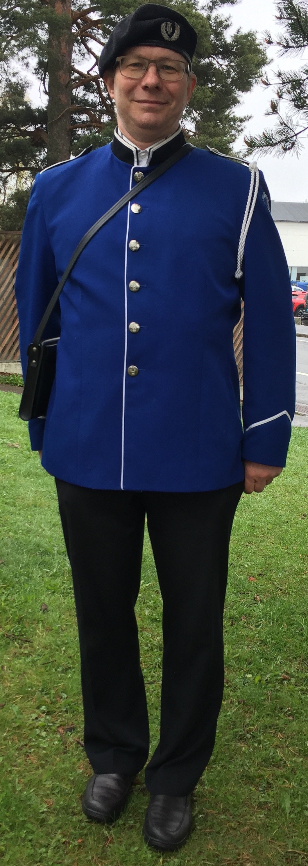 | Uniform til fanebærer | Uniformen er lik uniformen til nestledere | Fanebærer | Ved innendørs konserter utgår beret og noteveske |