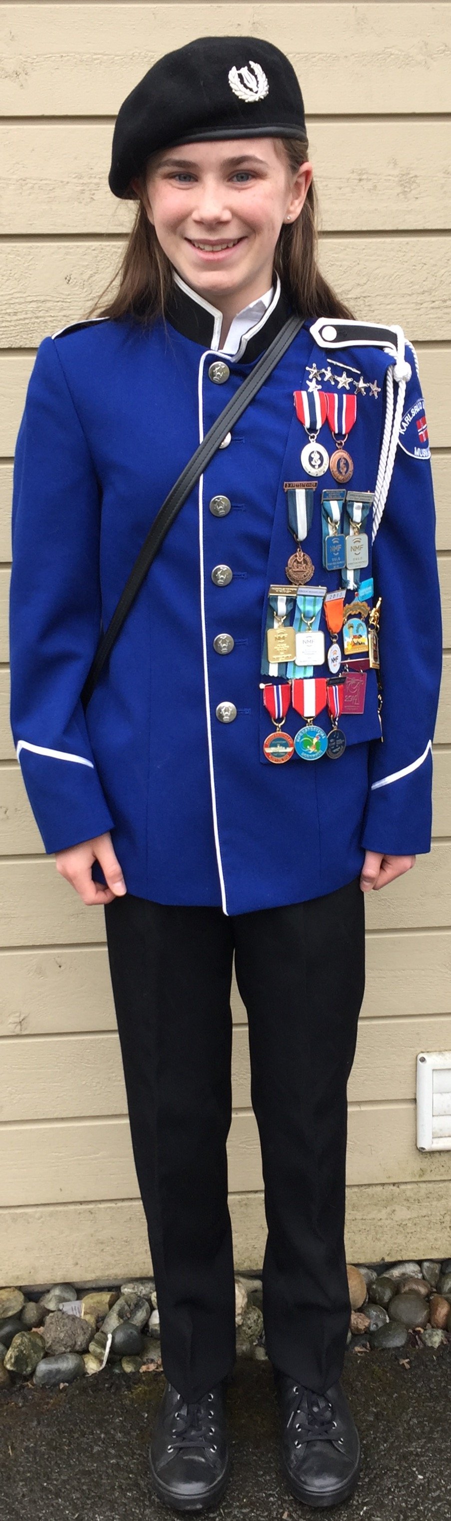 | Uniformsjakke med medaljeforstykke (blir ikke utdelt før musikanten går i juniorkorpset) | Uniformsjakke |